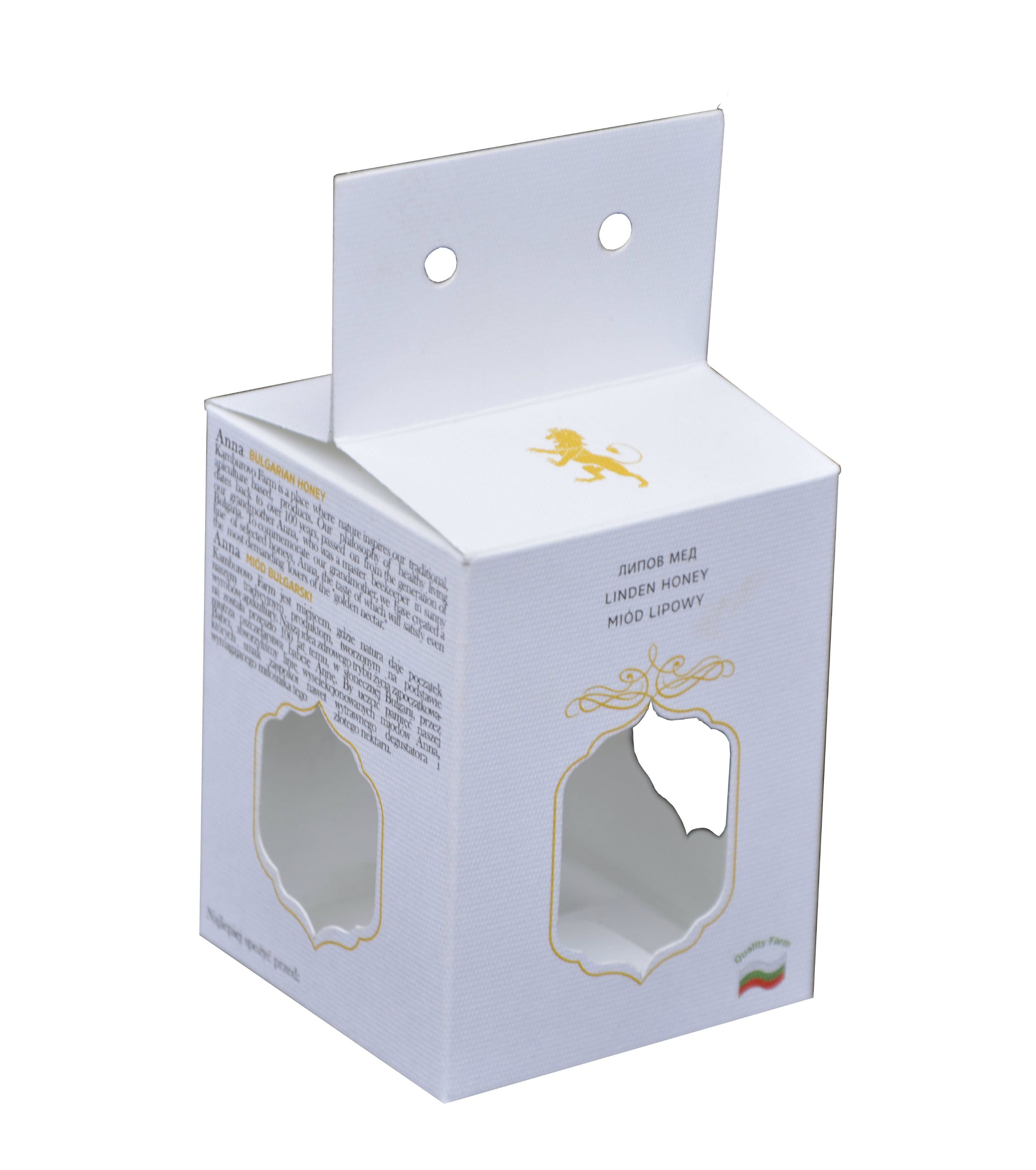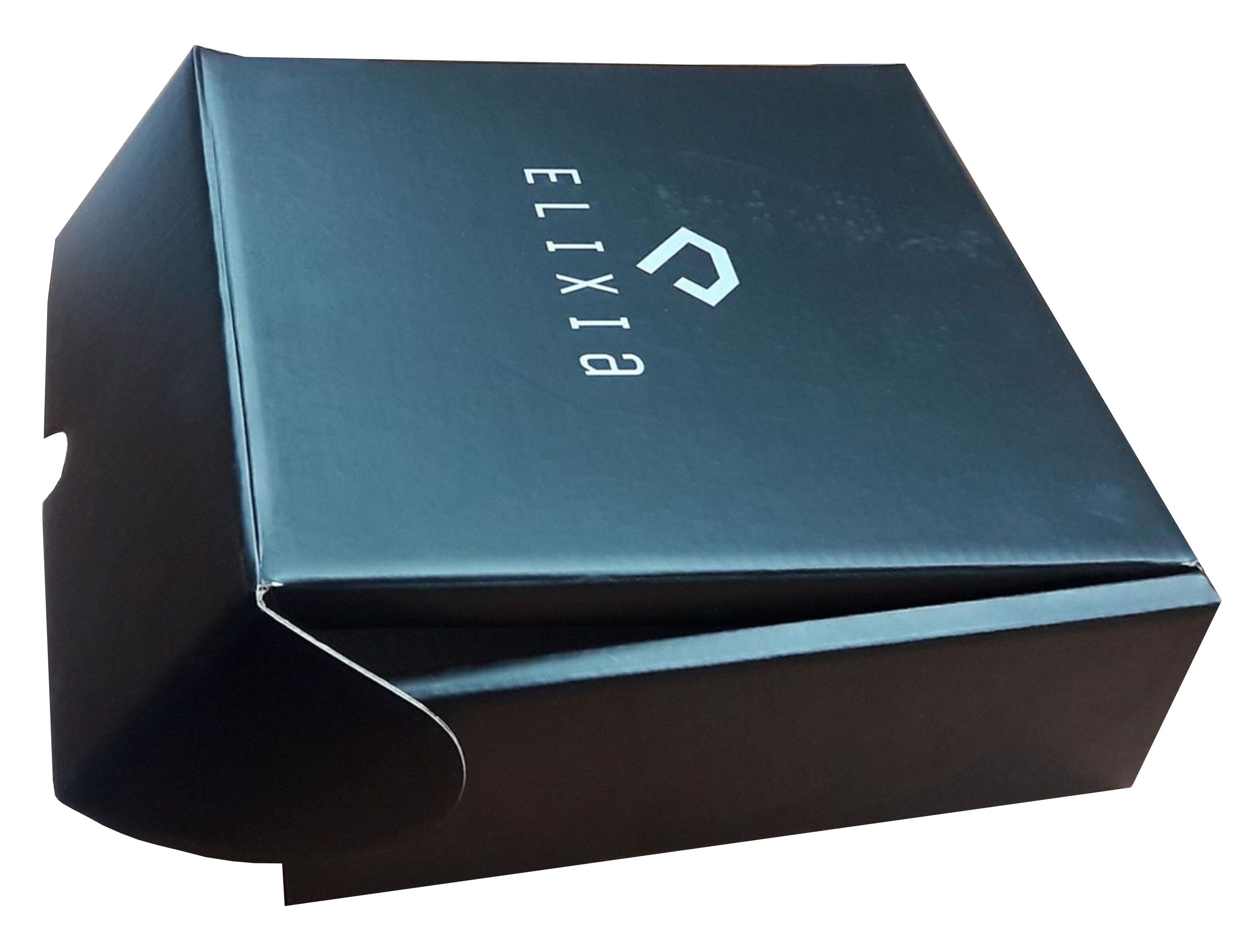 Fefco 215 z odwróconą górną klapką (zamknięcie od tyłu pudełka), mikrofala kaszerowana, folia błysk.