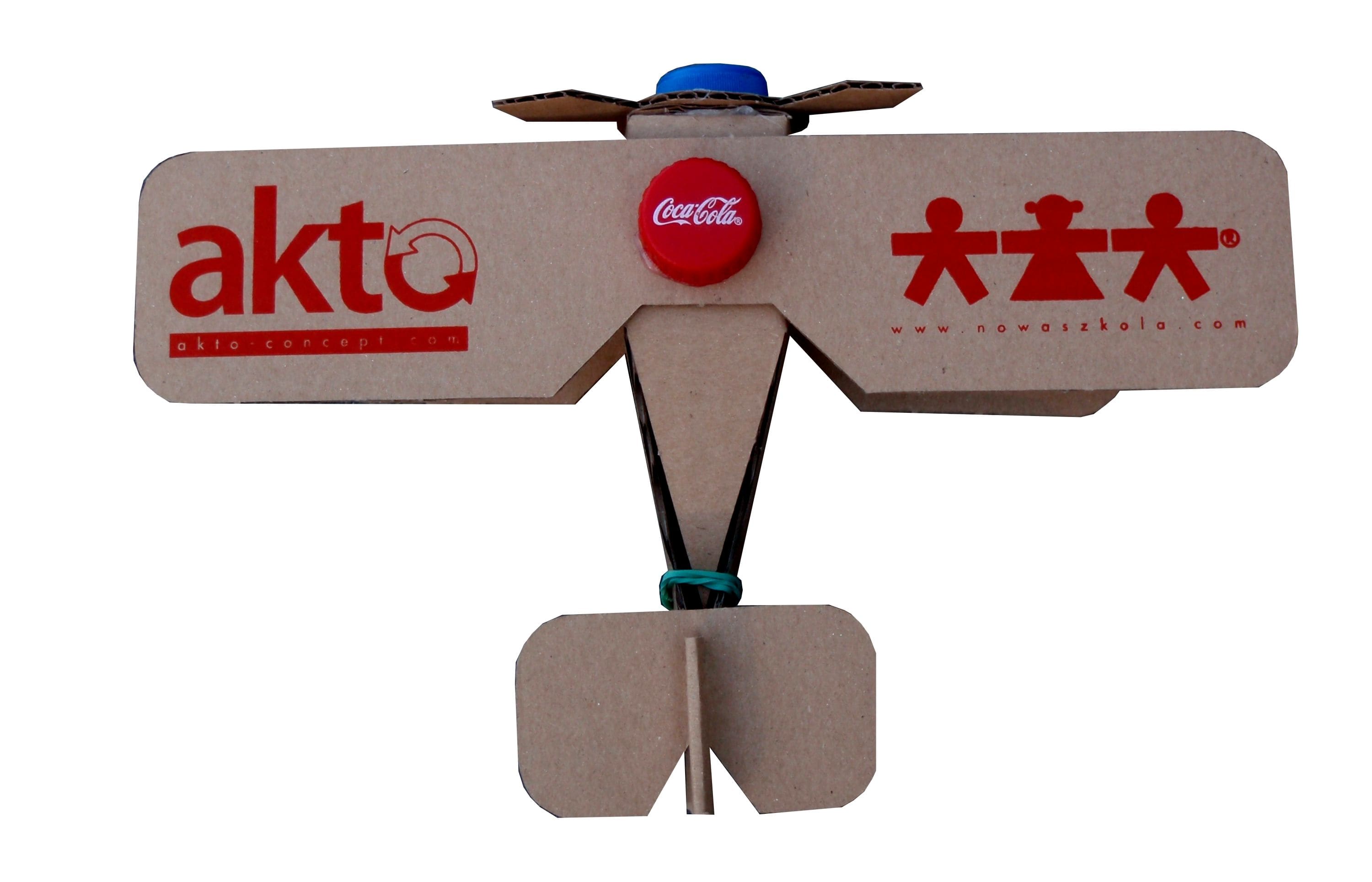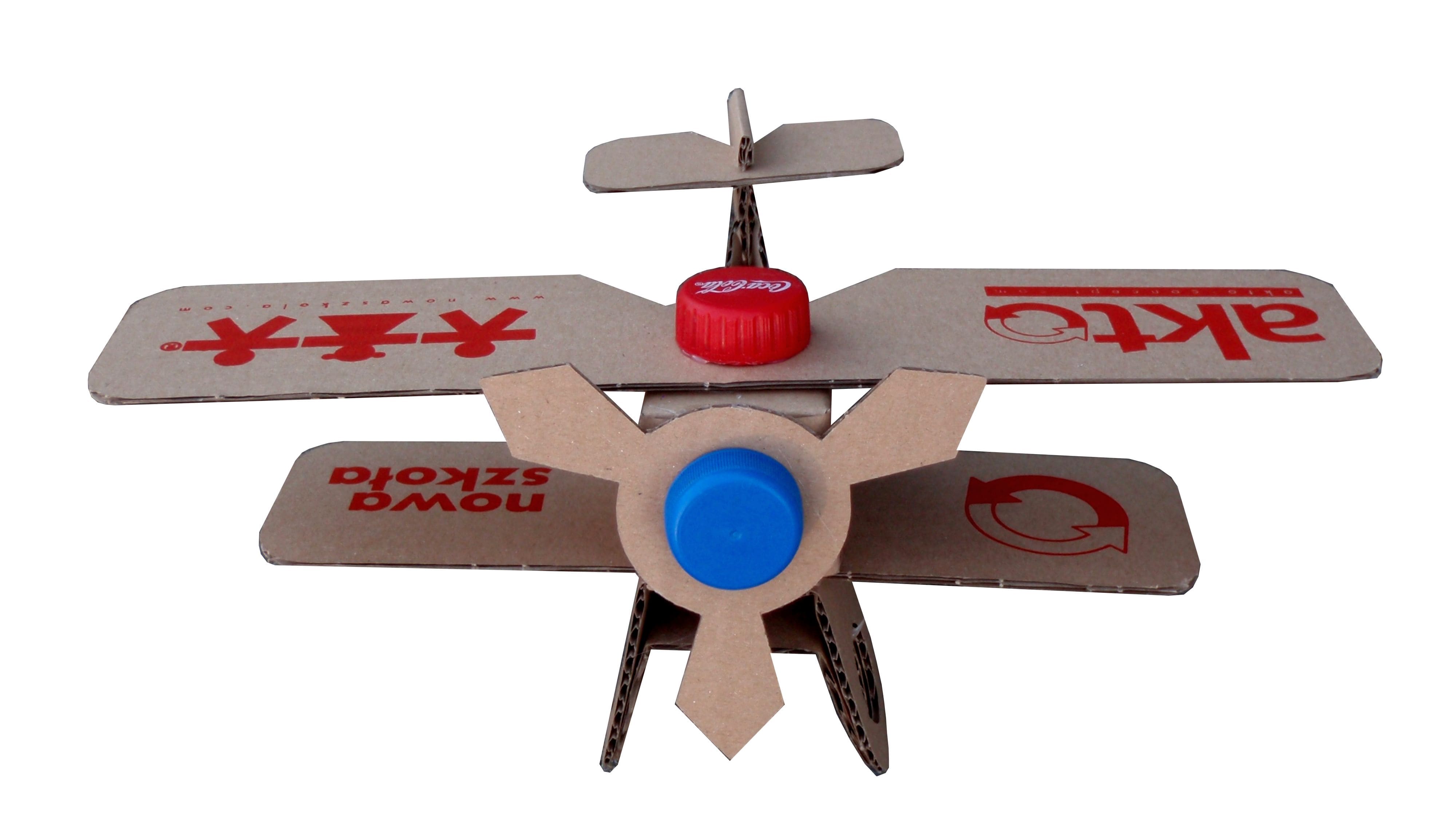 Samolot do samodzielnego składania. Może służyć jako artykuł reklamowy albo ekologiczna zabawka. Montowany przy użyciu zwykłych korków z butelek i gumki recepturki.